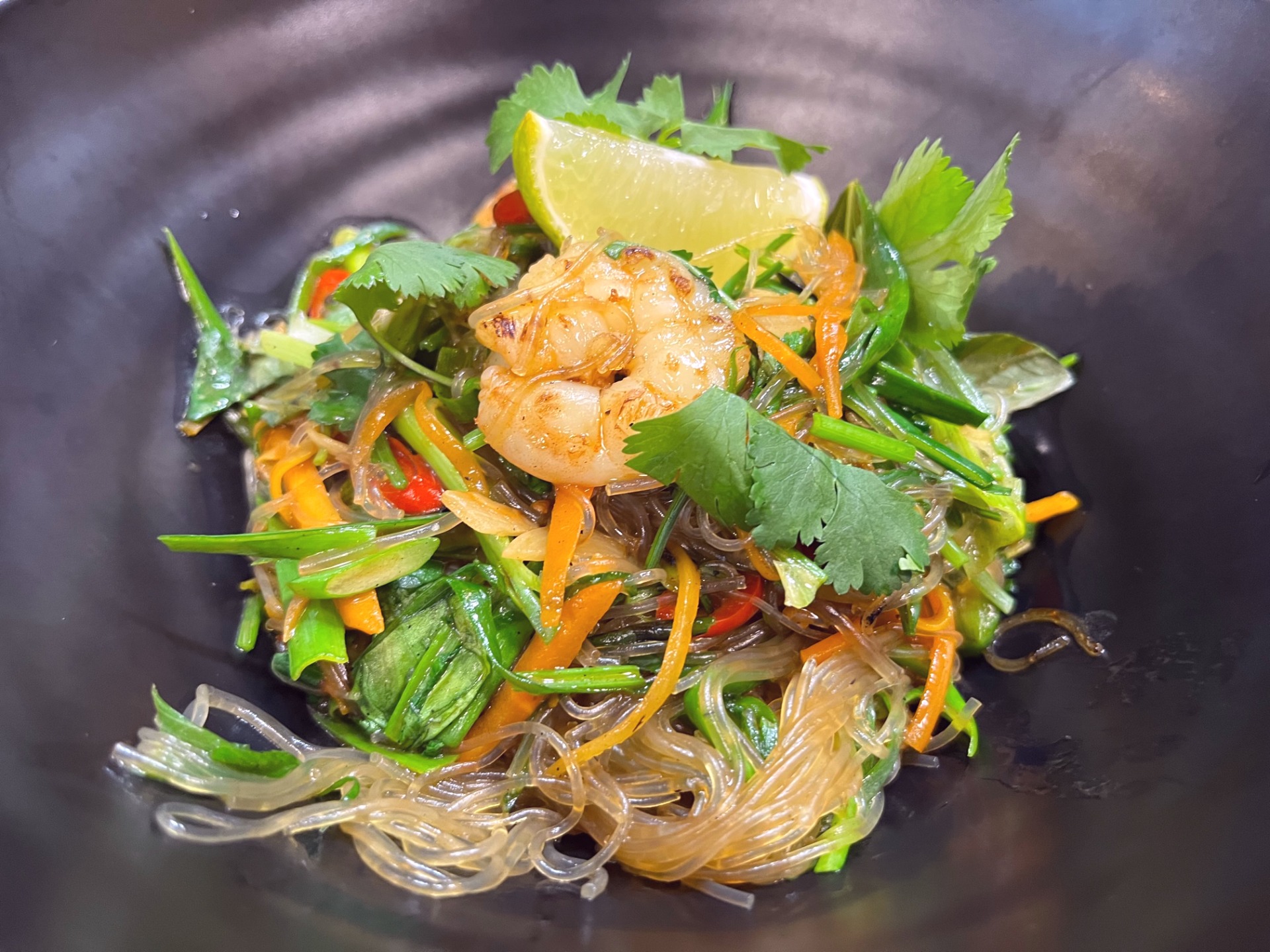 červené thajské curry s kuřecím masem, jasmínová rýže